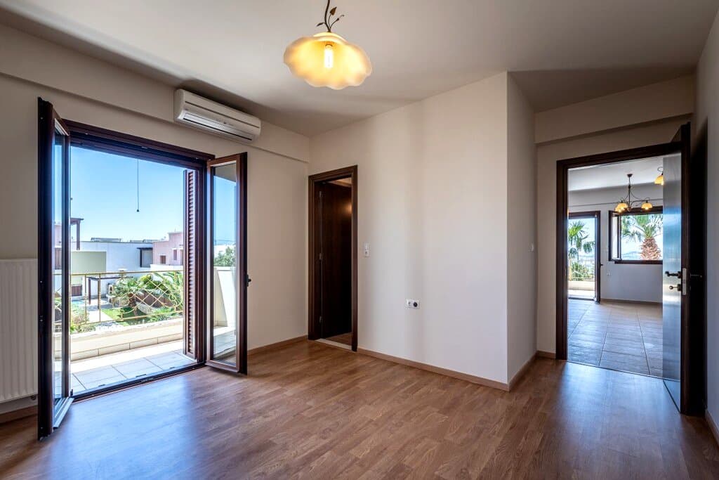 On the first floor of a residence in Makrigialos, this 140 sqm apartment offers three bedrooms, two bathrooms and a bougainvillea-lined balcony. Set 300 metres from the beach, the L-shaped layout provides natural light and cross-ventilation. Double glazing, air conditioning and heating throughout. The flat is ready to move into or rent out. The bougainvillea-lined balcony is the first thing travellers see in the listing photos. That kind of image drives clicks. Three bedrooms is the sweet spot for families and multi-generational trips, a fast-growing segment on the south coast. South-east Crete runs a long rental season from April through October, with steady family demand. At EUR 2,071/sqm, the value-for-space ratio remains among the best in the village.
