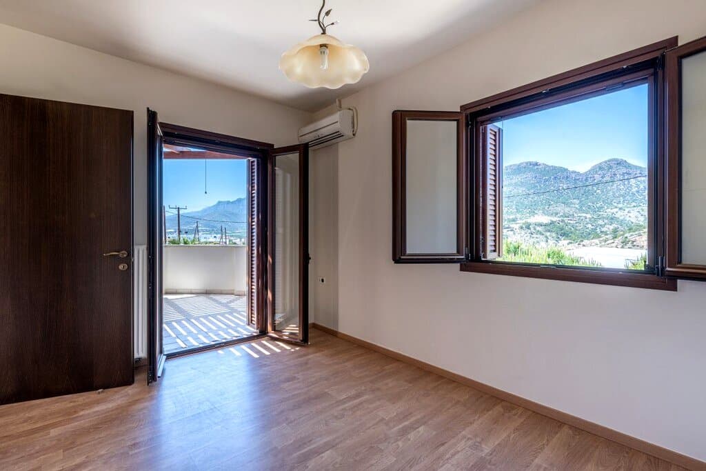 Le ticket d'entree le plus accessible a Makrigialos. 265 000 EUR pour 146 m2, soit 1 815 EUR/m2 : c'est en dessous de tous les comparables du village. La pergola avec vue montagne est un atout pour les photos. Deux chambres limitent le potentiel locatif aux couples, mais c'est un segment stable. Une seule salle de bain est un frein pour les groupes. Rendement brut estimable entre 6 et 8%. Bien adapte a un premier investissement ou une residence secondaire a petit budget.