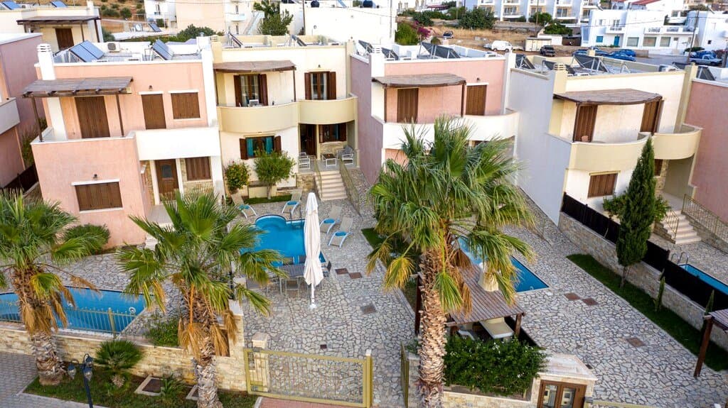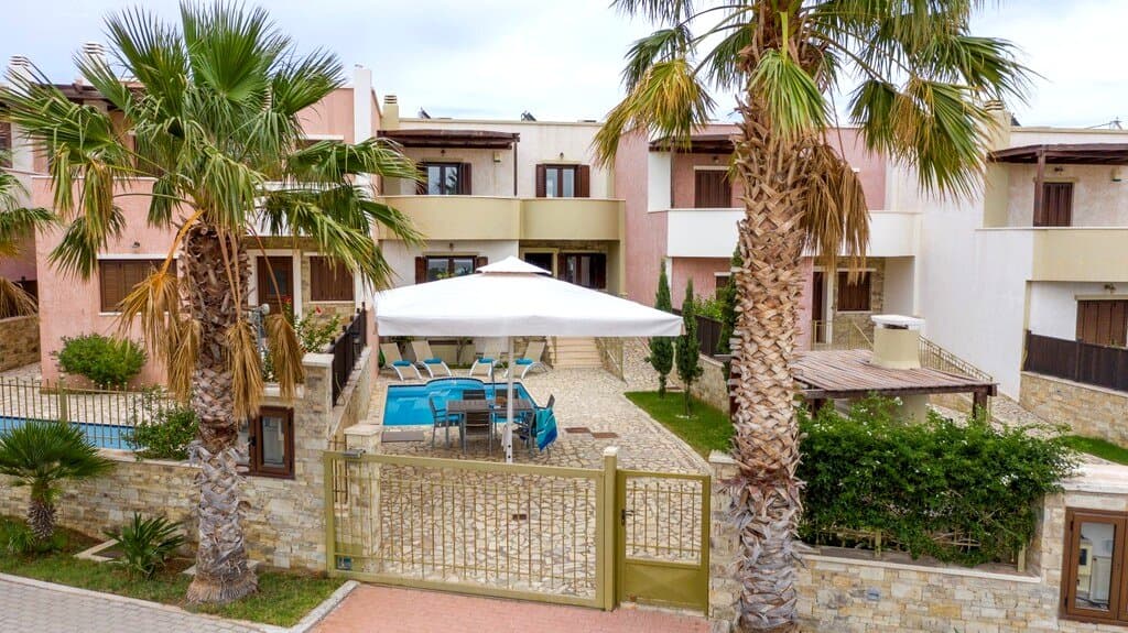 C'est le meme programme que les villas deja sur le site. Architecture soignee, finitions premium, piscine privee et livree meublee. A 790 000 EUR, c'est le haut du segment Makrigialos, mais les prestations le justifient : sauna, alarme, chauffage au sol. Ce type de bien peut generer 250 a 400 EUR/nuit en haute saison. Point fort : quatre salles de bain, rare a ce prix. Le rendement brut sera modere (5 a 7%) compte tenu du prix d'entree, mais la valorisation patrimoniale est solide.