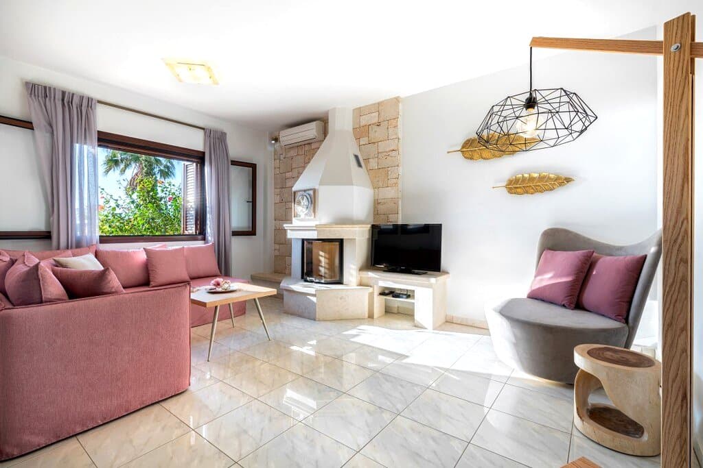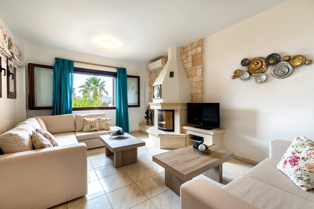 Villa contemporaine de 216 m2 sur trois niveaux a Makrigialos, a 300 metres de la mer. Quatre chambres, quatre salles de bain, sauna, salle de jeux et cheminee. Piscine privee, jardin paysager, double vitrage, alarme et porte blindee. L'architecture en courbes, les pergolas en bois et l'eclairage crepusculaire positionnent ce bien dans le segment premium. L'architecture en courbes, les pergolas, l'eclairage crepusculaire : c'est une villa qui se photographie toute seule. Sur les plateformes, la premiere image fait la reservation, et celle-ci provoque un effet immediat. Makrigialos attire deja une clientele fidele qui revient d'une saison sur l'autre. A 2 361 EUR/m2 pour du standing livre meuble et equipe, le positionnement reste 30 a 40% en dessous des references de l'ouest cretois.